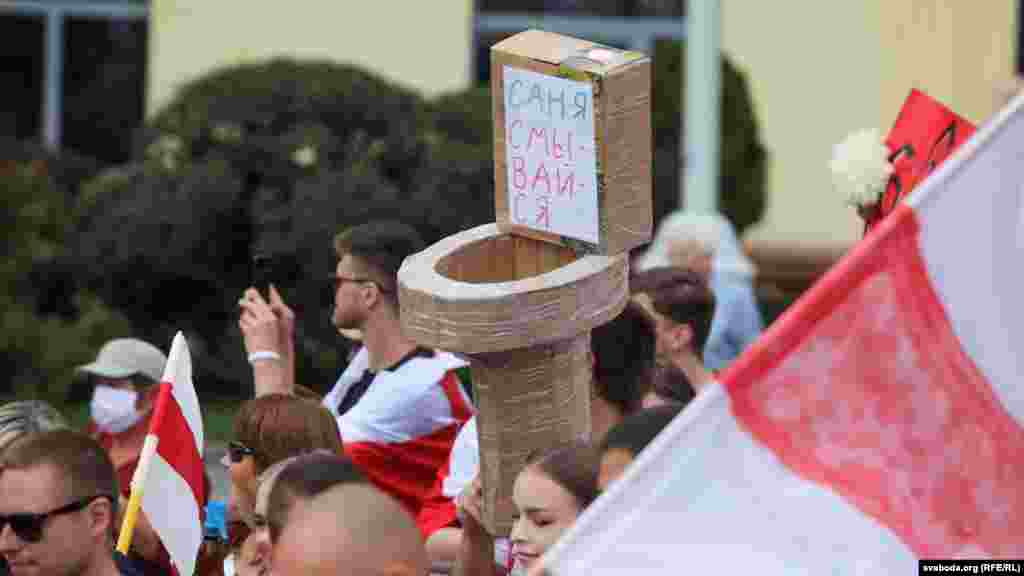 У Дворца Независимости к протестующим вышел помощник действующего президента Беларуси Николай Латышонок, но диалога не получилось.